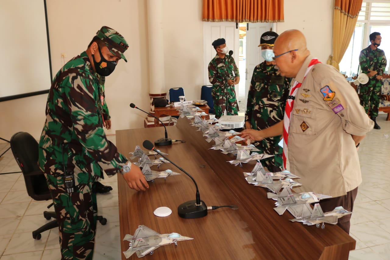Lampung, – Guna memberikan pemahaman dan kecintaan terhadap kedirgantaraan, Tim dari Puspotdirga Mabes AU melaksanakan kegiatan Forum Komunikasi Bakti Dirgantara 2021 di Lanud Pangeran M. Bun Yamin, Tulang Bawang, Lampung, Jumat (21/5/2021). Komandan Lanud Pangeran M. Bun Yamin Letkol Nav Yohanas Ridwan, S.T. dalam kesempatan ini menyambut dan mendampingi langsung rangkaian kegiatan dari Tim Puspotdirga yang terdiri dari Dirbidbakti Kolonel Kes Drs. Hesly Sirait, Dirbidkomsos Letkol Kal Najamudin, S.E. beserta rombongan.