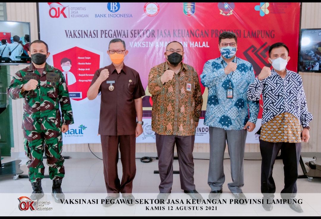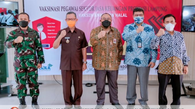 Wartasindo.com- Bandar Lampung, Otoritas Jasa Keuangan Provinsi Lampung bekerja sama dengan Dinas Kesehatan Provinsi Lampung, Korem 043 Garuda Hitam, Forum Komunikasi Industri Jasa Keuangan (FK-IJK) Provinsi Lampung, Bank Indonesia, dan asosiasi-asosiasi Industri Jasa Keuangan (BMPD, Perbarindo, Asbisindo, AAUI,APPI dan Perbanas) menyelenggarakan kegiatan Vaksinasi Pegawai Sektor Jasa Keuangan dalam upaya mendukung program percepatan vaksinasi bagi masyarakat untuk mencapai target pembentukan kekebalan komunitas di seluruh lapisan masyarakat sesuai target Pemerintah Pusat.