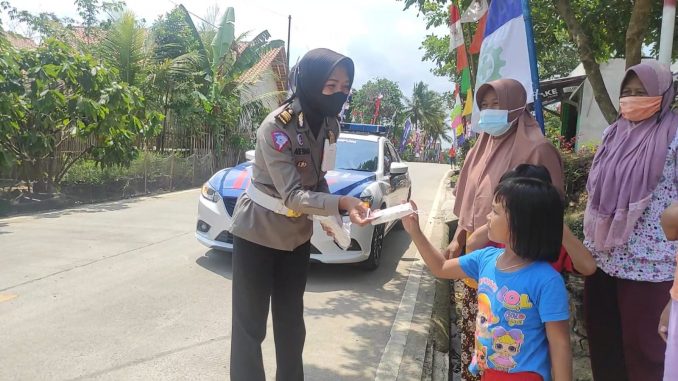 BANDAR LAMPUNG- Dalam rangka menyambut kedatangan Presiden Republik Indonesia (RI), Ir. Joko Widodo ke Lampung dan HUT Polwan yang ke-73, anggota Polwan Direktorat Lalulintas Polda Lampung, bagikan masker sekaligus berikan himbauan kepatuhan Prokes kepada warga di sekitar Bendungan Way Sekampung, Kabupaten Pringsewu, pada Kamis (2/9/2021) yang terlihat banyak tidak memakai masker.