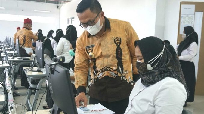 Meski sedang hamil, dia tetap semangat mengikuti tes CPNS 2021. “Ini pertama ikut tes. Mudah-mudahan rezeki,” ucapnya.
