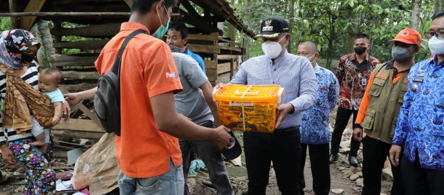 Bupati Lampung Selatan, H. Nanang Ermanto yang didampingi Pelaksana tugas Asisten Bidang Perekonomian dan Pembangunan Muhadi, Kalak BPBD M. Darmawan, dan Kadis Lingkungan Hidup Feri Bastian, menyambangi kediaman Yudi Supriadi, pada Kamis pagi (17/9/2021).