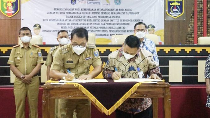 Wartasindo.com- Metro- Guna optimalisasi penerimaan Pendapatan Asli Daerah (PAD), Bank Lampung dan Pemkot Metro melakukan Penandatanganan Nota Kesepahaman (MoU) Pemanfaatan Tapping Box, Senin (20/9/2021) bertempat di Pemkot Metro.