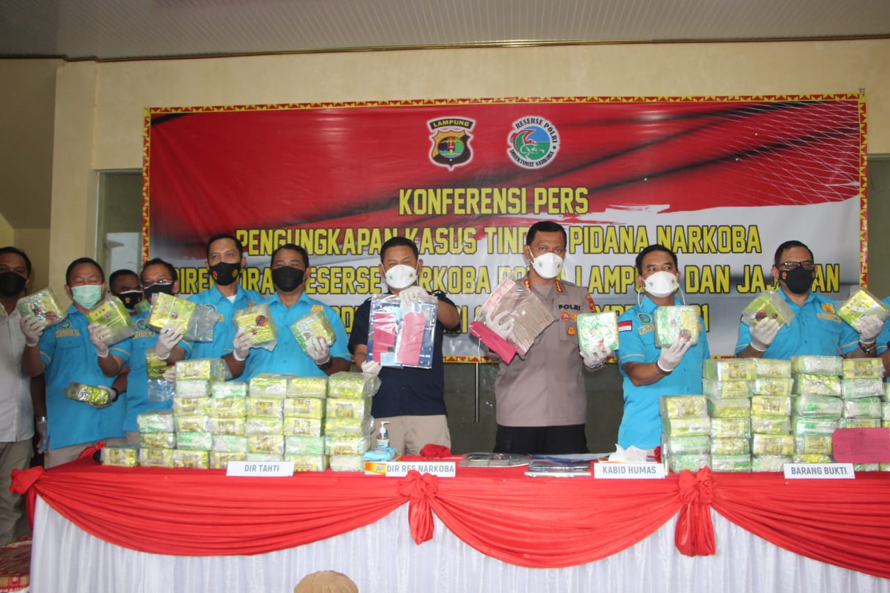 “Ungkap kasus selama sembilan bulan ini merupakan upaya Polda Lampung dan jajaran dalam Pencegahan, Pemberantasan, Penyalahgunaan dan Peredaran Gelap Narkotika (P4GN),” kata Kabid Humas Polda Lampung Kombes Pol Zahwani Pandra Arsyad pada konferensi pers.