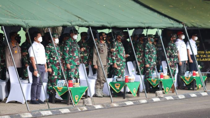 Wartasindo.com- Bandar Lampung, Kepala Staf Korem 043/Gatam Kolonel Inf Dendi Suryadi, S.H.,M.H, kamis (04/11/2021) Pkl 07.00 WIB menghadiri upacara penerimaan pasukan latihan Taktis Ancab BTP 13/Galuh Driver 1 Kostrad “Kartika Yuda 2021”, yang diikuti Mabrigif R 13 Yonif, Yonif 321/GT, Yonif 303, Yonif 323/SSM, Yonif 9/LLB, Divif 1 dan Yonpom, bertempat dilapangan Saburai Jl Majapahit Enggal Bandar Lampung.