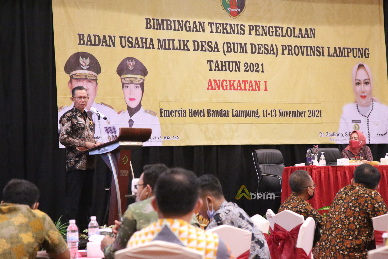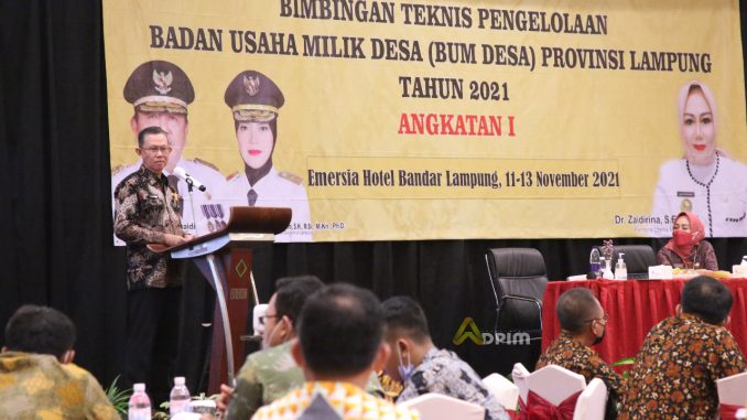 BANDAR LAMPUNG —- Demi meningkatkan kualitas Badan Usaha Milik Desa (BUMDes), Pemerintah Provinsi Lampung mengadakan Bimbingan Teknis Pengelolaan BUMDes Provinsi Lampung tahun 2021 di Hotel Emersia, Jum’at (12/11/2021).