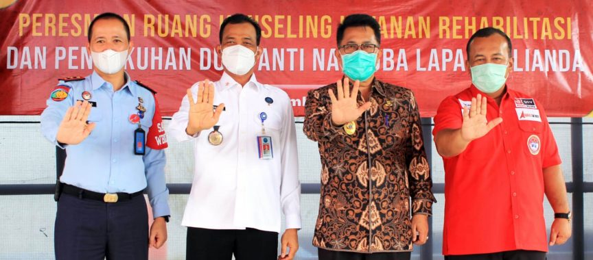 Selain itu, disela acara peresmian ruang rehabilitasi tersebut juga sekaligus dilakukan pengukuhan Duta Anti Narkoba yang terdiri dari warga binaan dan pegawai Lapas Kelas IIA Kalianda oleh Kepala Badan Narkotika Nasional (BNN) Provinsi Lampung Brigjen Pol. Edi Swasono.