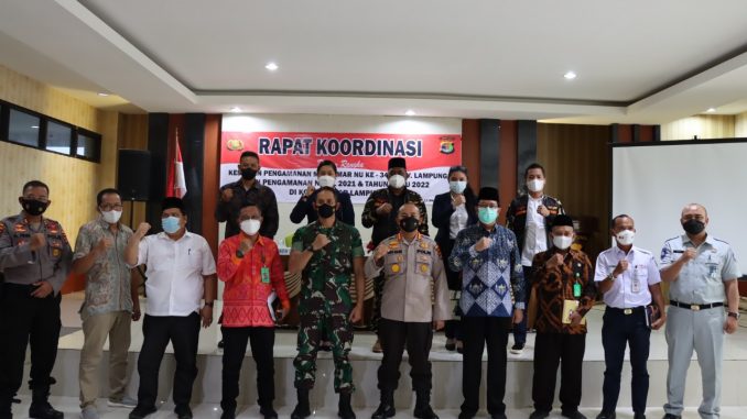 Dalam kesempatan tersebut, Kapolresta Bandar Lampung Kombes Pol Ino Harianto menyampaikan tentang perubahan watku pelaksanaan Muktamar NU.