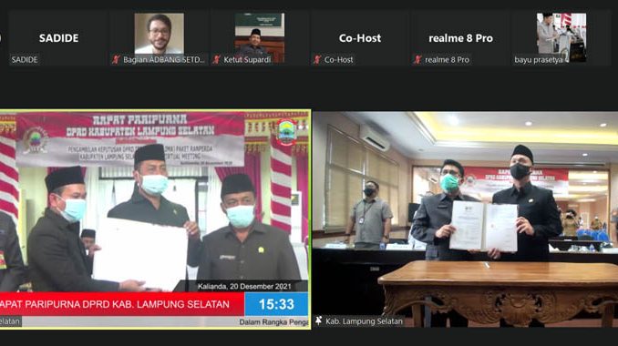 Pengesahan Raperda menjadi Perda itu berlangsung dalam rapat paripurna DPRD Kabupaten Lampung Selatan yang ditandai dengan penandatanganan berita acara persetujuan antara Bupati Lampung Selatan dan DPRD Kabupaten Lampung Selatan secara virtual.