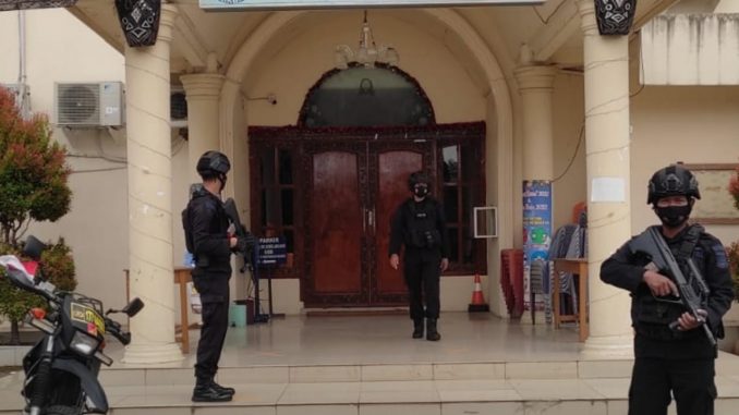 Wartasindo.com- BrimobLampung_Dalam rangka mengantisipasi gangguan kamtibmas dan memantau secara langsung kegiatan masyarakat selepas Perayaan Hari Natal dan menjelang Tahun Baru, Detasemen Gegana Satbrimob Polda Lampung dibawah pimpinan Kasubden Jibom Iptu Mantun Manik laksanakan patroli dan sambang ke beberapa Rumah Peribadatan (Gereja) di Wilayah Hukum Polresta Bandar Lampung.