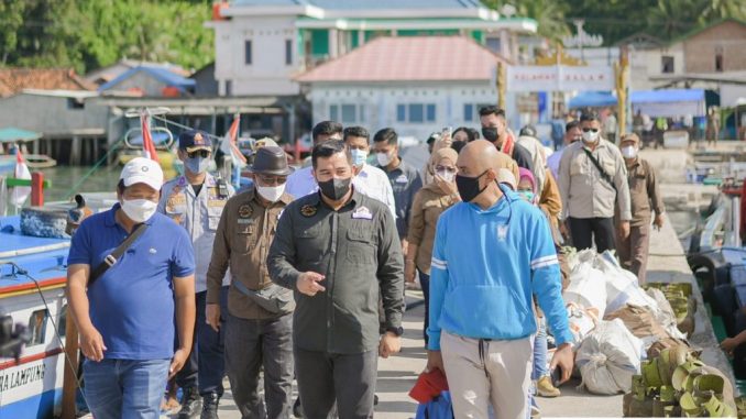 Bupati Pesawaran Dendi Ramadhona didampingi Ketua TP PKK Kabupaten Pesawaran, Ny. Nanda Indira Dendi mengikuti kegiatan pengenalan destinasi bahari dan kepulauan Kabupaten Pesawaran dengan menggunakan Kapal Pinisi Starship, Rabu (19/01).