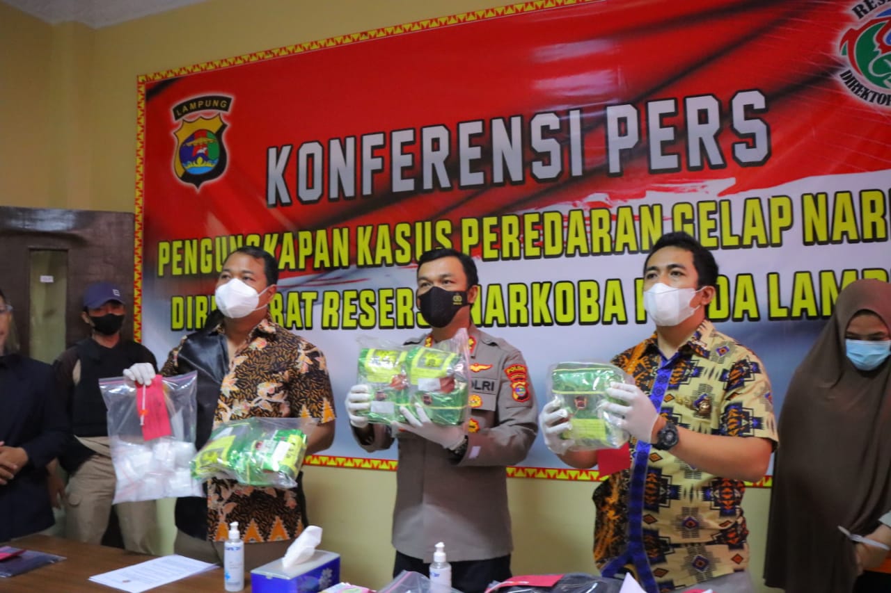 Direktur Narkoba Polda Lampung Kombes Pol Aris Supriyono melalui Wadirresnarkoba AKBP FX Winardi Prabowo didampingi Kasubdit 1 Kompol Wahyu Hidayat dan Kasubbid Penmas Bid Humas AKBP Rahmad Hidayat pada saat menggelar konferensi pers di mapolda Lampung mengatakan, berawal dari informasi masyarakat kemudian ditindaklanjuti oleh tim dari Ditresnarkoba Polda Lampung dengan melakukan penyelidikan.
