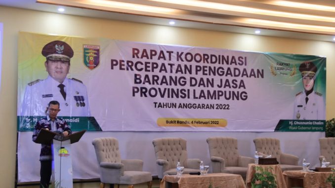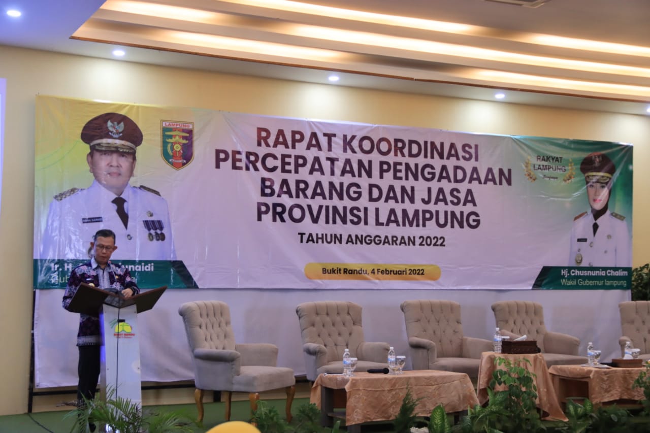 Pernyataan Gubernur Arinal tersebut disampaikan Sekretaris Daerah Provinsi Lampung, Fahrizal Darminto, sekaligus membuka Rapat Koordinasi Percepatan Pengadaan Barang dan Jasa Provinsi Lampung, bertempat di Ballroom Hotel Bukit Randu Bandar Lampung, Jum’at (04/02/2022)