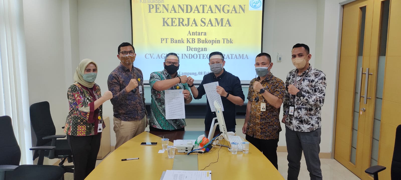 Penandatanganan dilakukan oleh Bpk. Riza Novian selaku Branch Manager Bank KB Bukopin Lampung dengan Agung Prihantoro S. KOM, MM sebagai Direktur CV. AGUNG INDOTECH PRATAMA.(Selasa, 08/02/22)