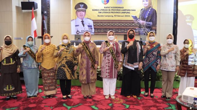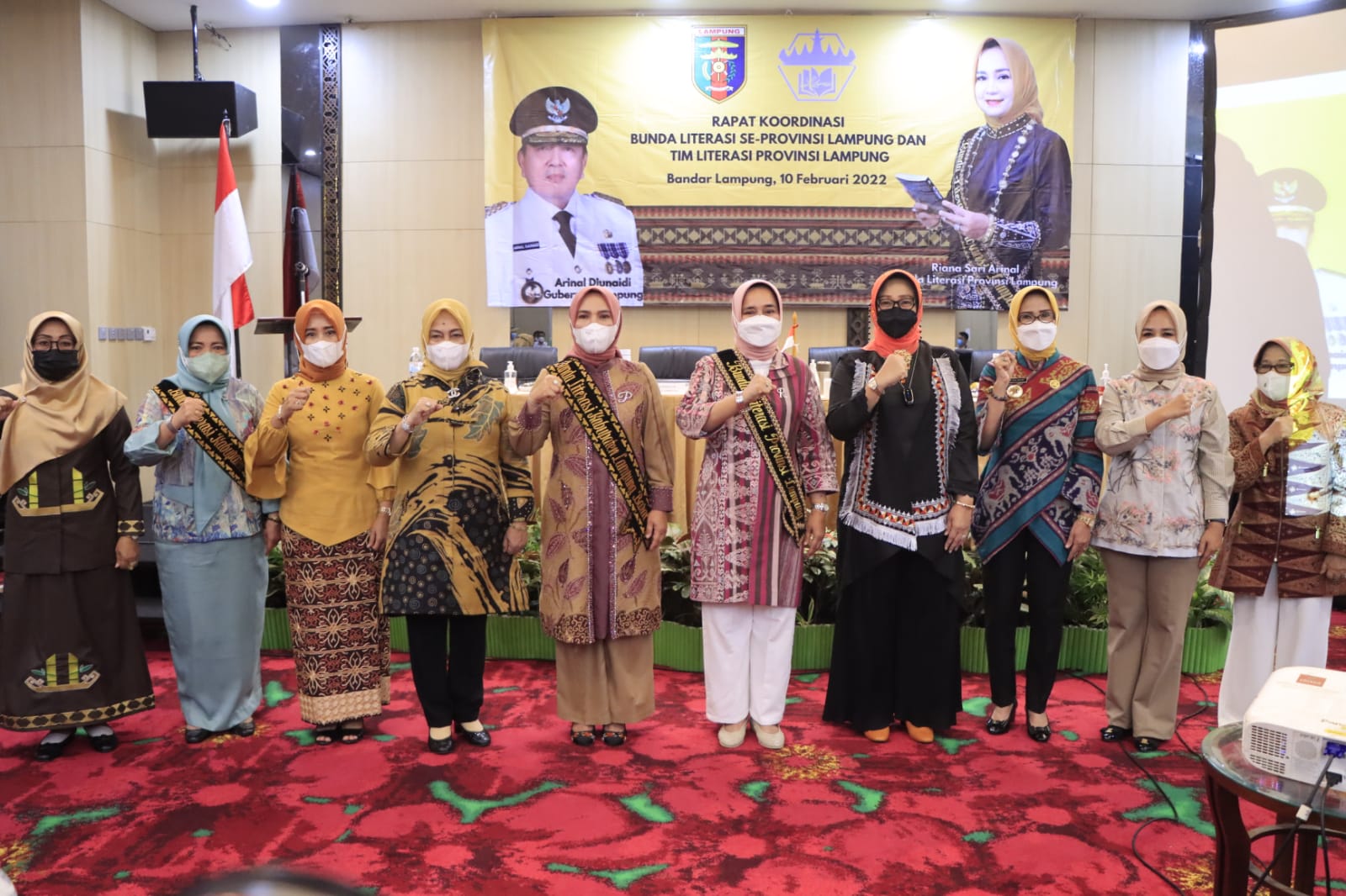 Bandar Lampung — Bunda Literasi Provinsi Lampung, Riana Sari Arinal, membuka Rapat Koordinasi Bunda Literasi se-Provinsi Lampung bersama Tim Literasi Provinsi Lampung, di Hotel Emersia, Kamis (10/02).