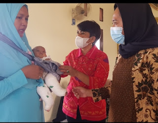Tulang Bawang l Lampung – Anggota DPRD Provinsi Lampung Budhi Condrowati bersama Anggota DPRD Tulang Bawang Ines Septia Saputri menyempatkan diri untuk melihat kondisi Halimatus Sadiya. Balita berusia 3 bulan buah hati pasangan Agus Sucipto dan Wiwik Widayanti ini terlahir dengan kelainan kaki atau dengan bahasa medisnya genu varum.
