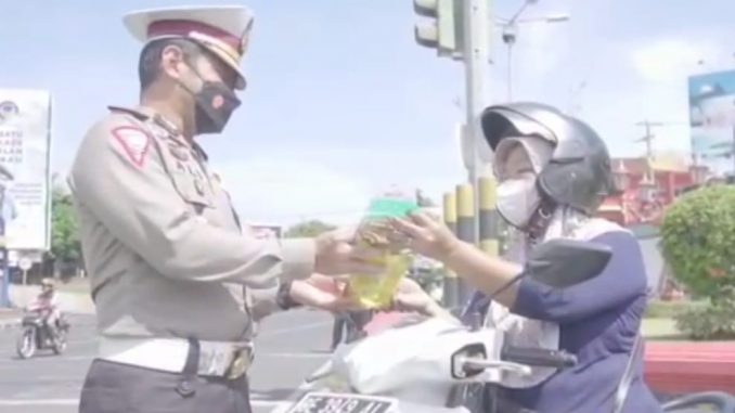 “Kegiatan ini ide kreatif pak Dirlantas, seluruh hadiah dibagikan gratis kepada pengendara yang taat dan patuh peraturan lalu lintas. Ini sekaligus upaya kami dalam membantu kebutuhan masyarakat, serta menekan laju penularan COVID-19,” ujarnya.