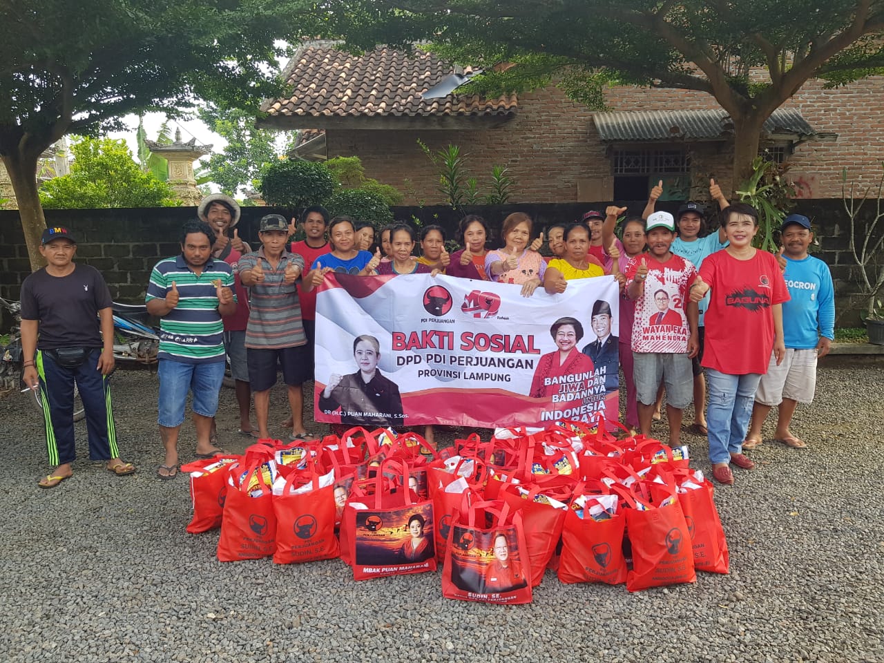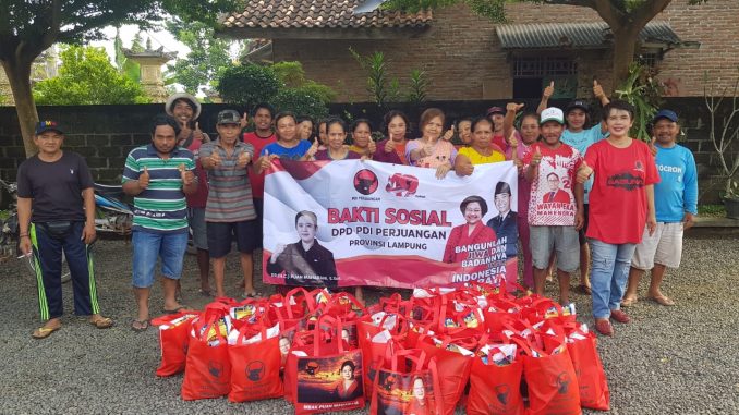 Anggota DPRD Provinsi Lampung Fraksi PDI Perjuangan sekaligus Fungsionaris PDI Perjuangan Lampung Budhi Condrowati membagikan bantuan dalam rangka HUT PDI Perjuangan ke-49.