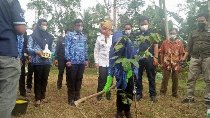 KOTAAGUNG–Bupati Tanggamus, Hj. Dewi Handajani resmikan taman keanekaragaman hayati (Kehati) Galih Batin, PT Tirta Investama, AQUA Tanggamus, bekerjsama dengan Mitra Bentala, di Pekon Teba, Kecamatan Kotaagung Timur, Kamis (17/3).