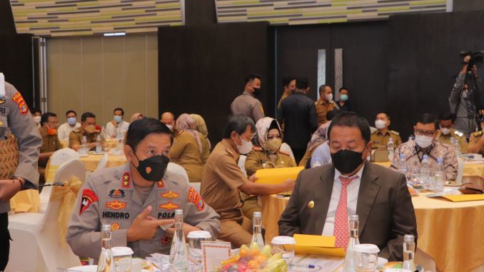 Wartasindo.com- Bandarlampung–Kapolda Lampung Irjen Pol Hendro Sugiatno menghadiri high level marketing rapat koordinasi Tim Pengendali Inflasi Daerah (TPID) Provinsi Lampung bersama forkopimda, dinas dan instansi terkait, dalam rangka persiapan menjelang bulan suci Ramadhan dan Hari Raya Idul Fitri 1443 H dan desiminasi komoditi/produk usaha unggulan, di ballroom hotel Novotel Bandar Lampung, Senin (28/3/2022) pagi yang dibuka langsung oleh Gubernur Lampung Arinal Djunaidi.
