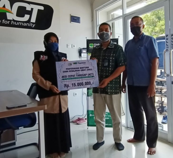 Bandarlampung — PT Pegadaian Syariah Cabang Raden Intan Lampung menyalurkan bantuan untuk program Ramadan ACT Lampung. Bantuan yang disalurkan Rp. 15.000.000 ( Lima Belas Juta Rupiah) merupakan Dana Kebajikan Umat (DKU) yang sudah dihimpun oleh Pegadaian Syariah dan diperuntukan untuk program Ramadhan 1443 H. Insya Allah dana ini akan disalurkan untuk membantu kegiatan berbagi pangan Ramadan untuk masyarakat prasejahtera di Lampung. Pemimpin Cabang PT Pegadaian Syariah Cabang Raden Intan Lampung, Daniel Tamara, menjelaskan pihaknya sudah lama bermitra dengan ACT (Aksi Cepat Tanggap) Lampung sudah beberapa tahun belakangan ini, Harapan Kami bahwa infak dan sedekah milik nasabah kami yang disalurkan melalui ACT Lampung bisa tepat sasaran, menurutnya. Kepala Cabang ACT Bandar Lampung , Fajar Yusuf Dirgantara, mengucapkan banyak terima kasih dan mengimbau perusahaan atau pihak lain mengikuti langkah Pegadaian ini, karena masih banyak saudara – saudara Kita di bulan Ramadhan ini yang harus dan wajib Kita santuni dari Infak, sadaqoh dan Zakat Kita yang disalurkan melalui berbagai program Pangan di Aksi Cepat Tanggap Bandar Lampung seperti Mualaf, Marbot Masjid, Guru ngaji selain yatim dan Keluarga Prasejahtera. ”Dengan demikian Ramadhan ini akan menjadi momentum kebaikan yang bisa ditebarkan oleh semua Masyarakat Muslim yang ingin turut berbagi keberkahan, Insya Allah dapat meringankan beban masyarakat terutama yang terdampak pandemi sehingga akhirnya mereka mampu mandiri ,” tutupnya. (*)