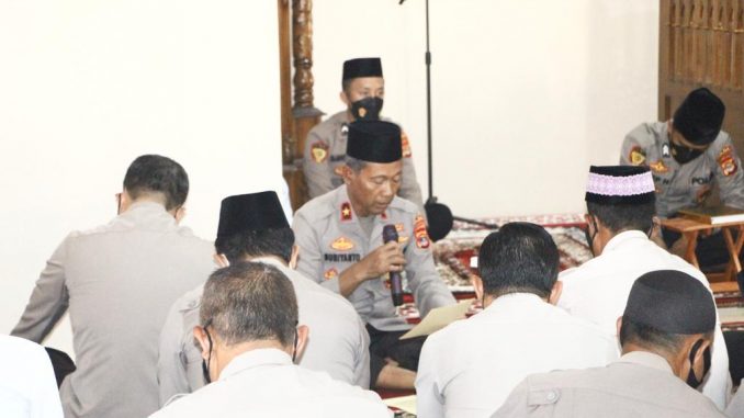 Acara yang juga diikuti oleh seluruh personil di lingkungan Polda Lampung tersebut, diisi Tausiah oleh ustad. Jefri S.os.