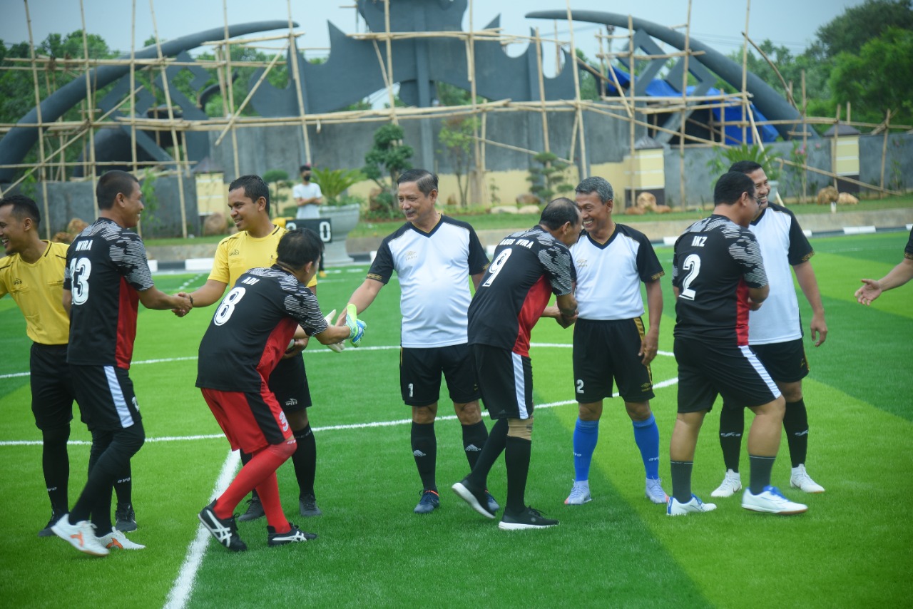 Bandarlampung — Kapolda Lampung Irjen Pol Hendro Sugiatno didampingi Wakapolda Lampung Brigjen Pol Subiyanto mengikuti kegiatan syukuran lapangan mini soccer Presisi di Mapolda Lampung, Rabu (25/5/2022) sore.