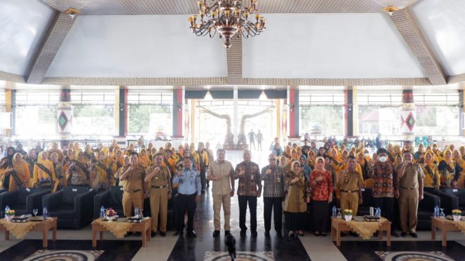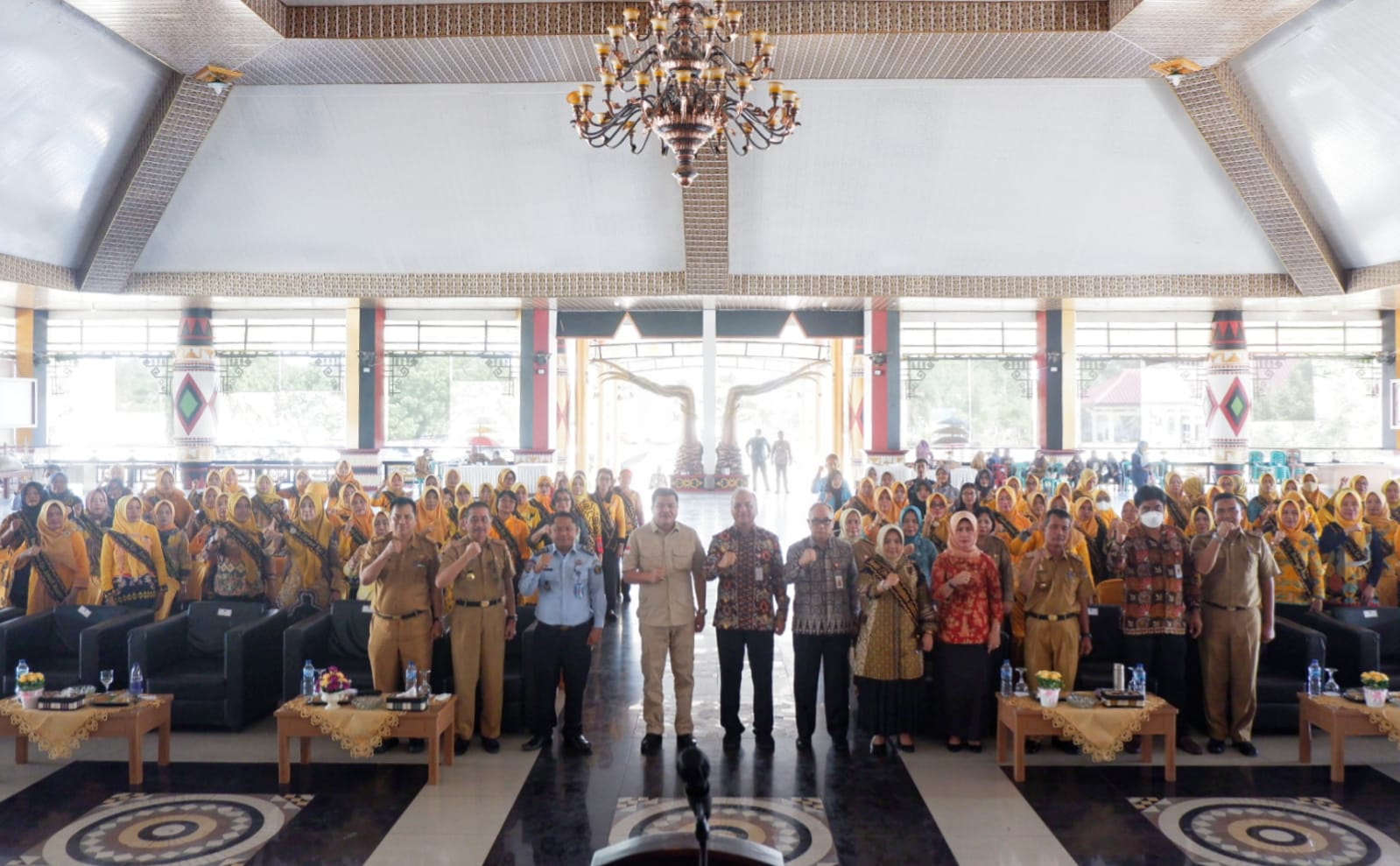 Kabupaten Lampung Tengah, 28 Juni 2022. Kantor Otoritas Jasa Keuangan Provinsi Lampung, bekerja sama dengan Pemerintah Daerah Kabupaten Lampung Tengah, menyelenggarakan Sosialisasi Literasi dan Inklusi Keuangan dalam rangka Survey Nasional Literasi dan Inklusi Keuangan Tahun 2022, yang dihadiri Bupati Kabupaten Lampung Tengah, Bapak Hi. Musa Ahmad, S.Sos., Bunda Literasi Kabupaten Lampung Tengah, Ibu Mardiana Musa Ahmad, Ketua Dharma Wanita Persatuan Kabupaten Lampung Tengah, Ibu Yulita Nirlan dan Bunda Literasi Kecamatan/Kampung se-Kabupaten Lampung Tengah, Dinas dan Instansi terkait di Kabupaten Lampung Tengah, Kepala Bappeda, Bapak Drs. Rusmadi, M.M., Kepala BPKAD, Bapak Edrin Indra Putra, S.Sos., M.M., Selasa (28/6) bertempat di Gedung Nuwo Balak, Kabupaten Lampung Tengah.
