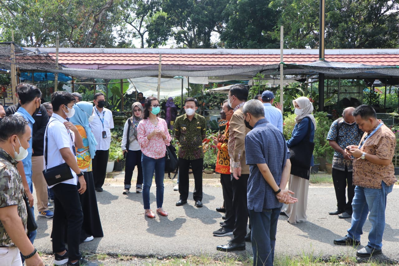 Seusai melakukan rapat, Asisten Perekonomian dan Pembangunan, Kusnardi dan Tim dari Kementrian BUMN Pusat melakukan peninjauan langsung ke lokasi rencana dibangunnya UMKM Center di PKOR Way Halim Bandar Lampung. (Dinas Kominfo dan Statistik Provinsi Lampung)