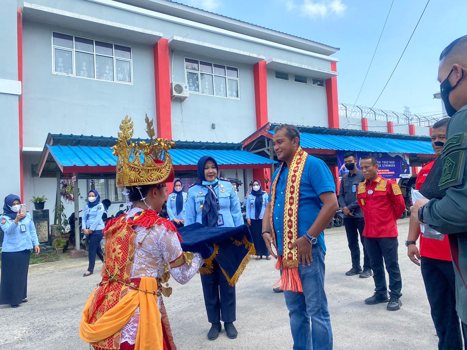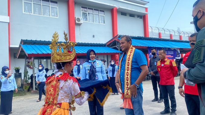 Sebelum memasuki pintu portir Lapas, Wamenkumham dan rombongan disambut oleh dengan tarian tradisional sembah yang ditampilkan oleh 5 orang Warga Binaan Pemasyarakatan (WBP) LPP Lampung.