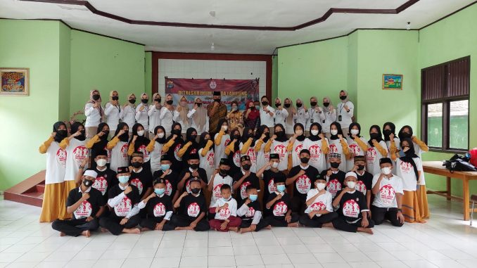 Kedatangan rombongan disambut Kepala UPTD PSAA Budi Asih, Drs Eko Supriono dan seluruh pengasuh.