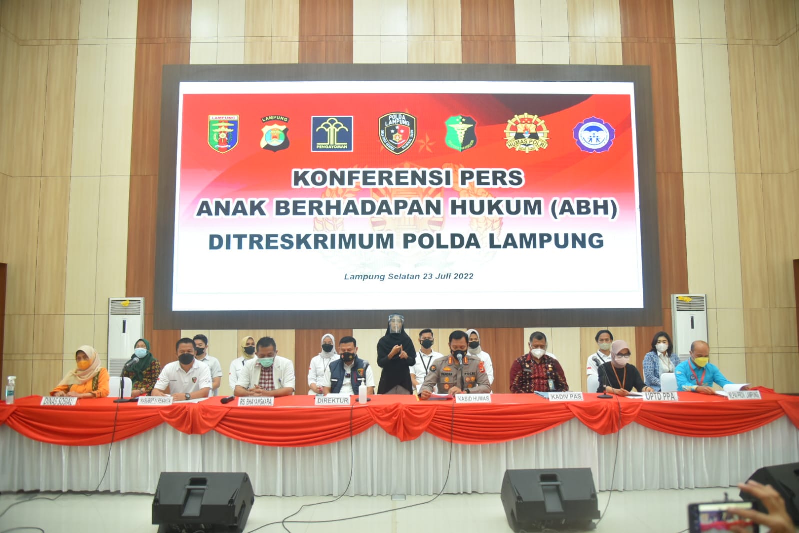 Hadir dalam konferensi pers tersebut, Dirkrimum Kombes Pol Reynold Hutagalung, Kadiv PAS Kemenkumham Lampung Farid Djunaidi, Ketua Tim Forensik RS Bhayangkara dr Jims Ferdinan Tambunan.Sp,F, UPTD PPA Aira, Dinas Sosial Ratna F, dan turut hadir Organisasi Pemerhati Anak, Lembaga Perlindungan Anak Indonesia (LPAI) Prov Lampung Andi Lian, Sabtu (23/7/22).