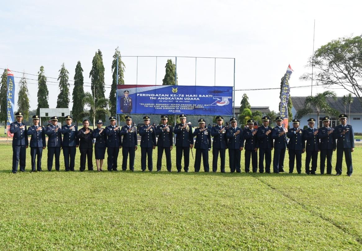 Wartasindo.com- Menggala, Lanud BNY. Komandan Pangkalan TNI AU Pangeran M. Bun Yamin (Danlanud BNY) Letkol Nav Yohanas Ridwan, S.T., M.Han., memimpin langsung upacara peringatan ke-75 Hari Bakti TNI AU di lapangan Lanud Pangeran M. Bun Yamin, Astra Ksetra, Menggala, Tulang Bawang. Jumat (29/7/2022).