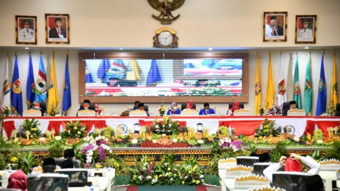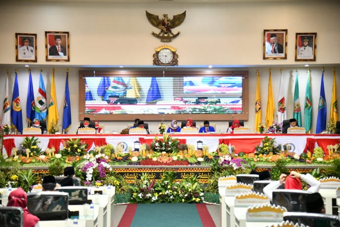 Mendengarkan Pidato Kenegaraan Presiden RI Joko Widodo secara Hybrid di Ruang Sidang DPRD Provinsi Lampung, Selasa (16/08/2022).