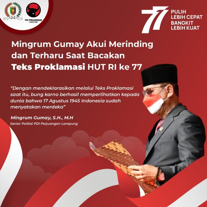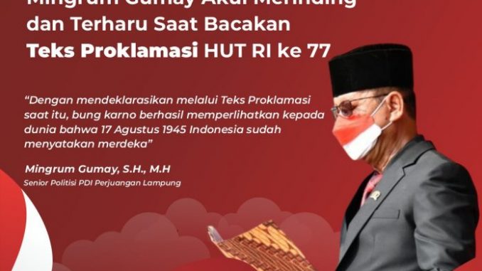 ” Dengan mendeklarasikan melalui Teks Proklamasi saat itu, bung karno berhasil memperlihatkan kepada dunia bahwa 17 Agustua 1945 Indonesia sudah menyatakan merdeka ” Ungkap Mingrum