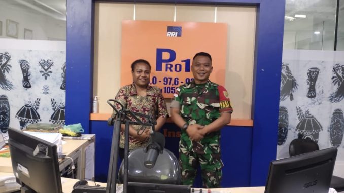 Siaran langsung yang dihadiri oleh Lettu Inf Eko Gondo Pranolo selaku (Pasi Ops Satgas Yonif 143/TWEJ) sebagai narasumber dalam dialog interaktif bersama Saudari Sofi (Reporter RRI Jayapura) menyapa masyarakat Papua melalui siaran langsung RRI Jayapura.