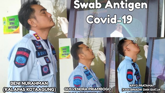 Tanggamus – Sebanyak 55 Petugas Lembaga Pemasyarakatan Kelas IIB Kotaagung (Lapas Kotaagung) kembali lakukan Tes Usap (Swab Test) Antigen guna memastikan Lapas Kotaagung Terbebas dari penyakit menular Covid-19 yang saat ini masih menjadi Pandemi di seluruh Indonesia, Kamis (15/12).