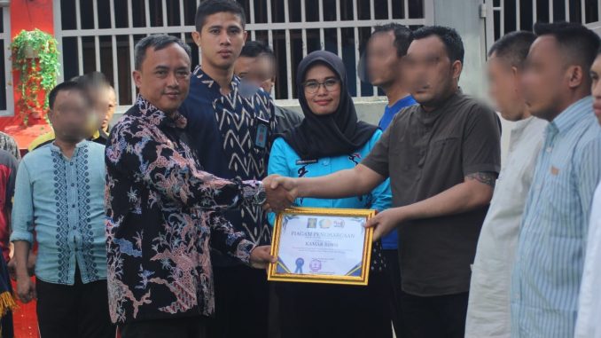 Tanggamus, – Kepala Rumah Tahanan Negara (Karutan) Kota Agung Benny Muhammad Saefulloh berikan penghargaan kamar terbaik bidang pembinaan kepribadian dan menyerahkan SK PB dan Asimilasi saat menjadi Inspektur Upacara Bendera Warga Binaan Pemasyarakatan (WBP) di Lapangan Rutan setempat pada Jumat, (16/12/2022).
