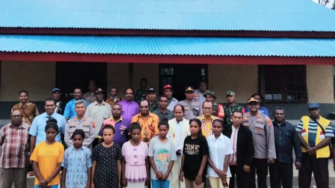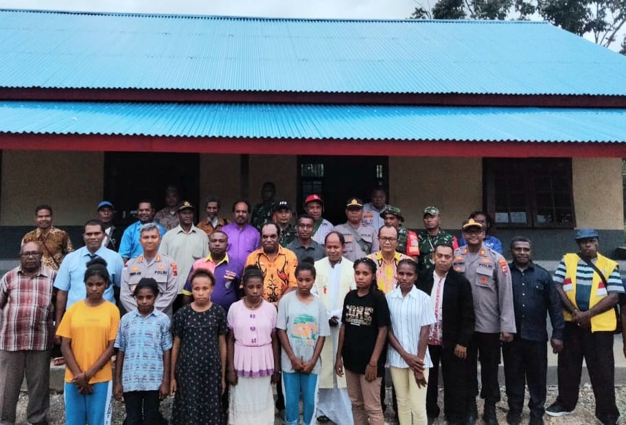 Keerom – Satgas Yonif 143/TWEJ menghadiri acara Safari Natal sekaligus peresmian Asrama Ostia Paroki Santo Bonafasius oleh Bupati Keerom, bertempat di Kampung Umuaf, Distrik Web, Kab. Keerom, Papua, Jumat (16/12/2022).