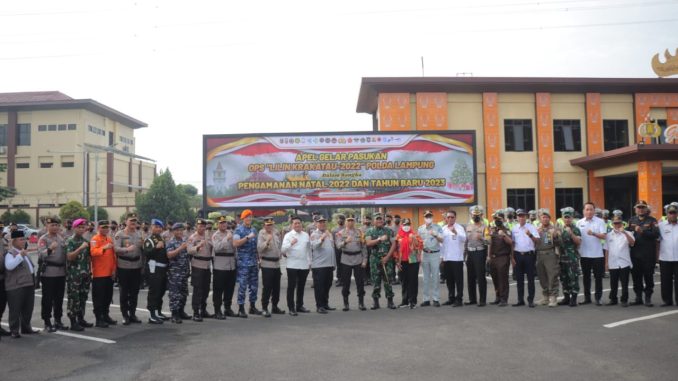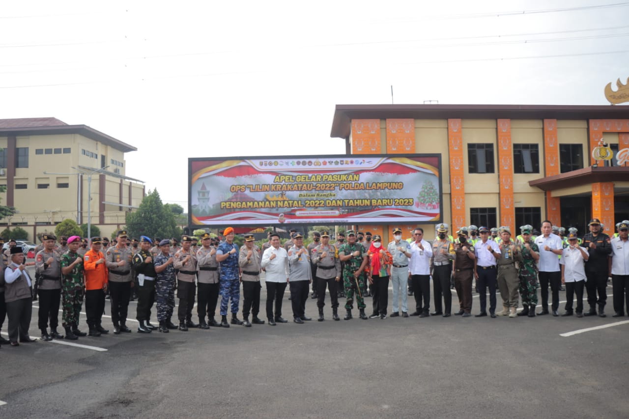 Kapolda Lampung Irjen Pol Akhmad Wiyagus dalam memberikan sambutannya didampingi Danrem 043/Gatam Brigjend Ruslan Effendi mengatakan, apel gelar pasukan merupakan bentuk pengecekan akhir kesiapan personel maupun sarana prasarana. Diharapkan pengamanan dapat terselenggara secara optimal dan sinergi. Sehingga, perayaan natal 2022 dan tahun baru 2023 (Nataru) mampu berjalan dengan kondusif.
