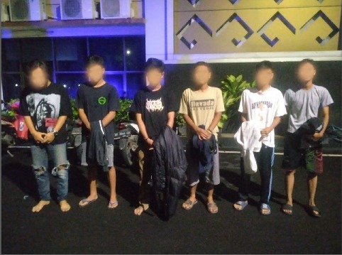 “Saat patroli, petugas melihat ada puluhan remaja berkumpul dan saat anggota menghampiri mereka, sebagian dari mereka langsung pergi menggunakan sepeda motor namun kami berhasil mengamankan 6 orang”, Imbuh Kompol Warsito.