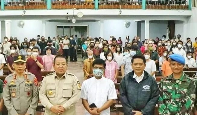 Selain melaksanakan peninjauan pengamanan perayaan malam Natal Danlanud BNY juga menyempatkan diri untuk melaksanakan perayaan ibadah malam Natal di wilayah Tulang Bawang.
