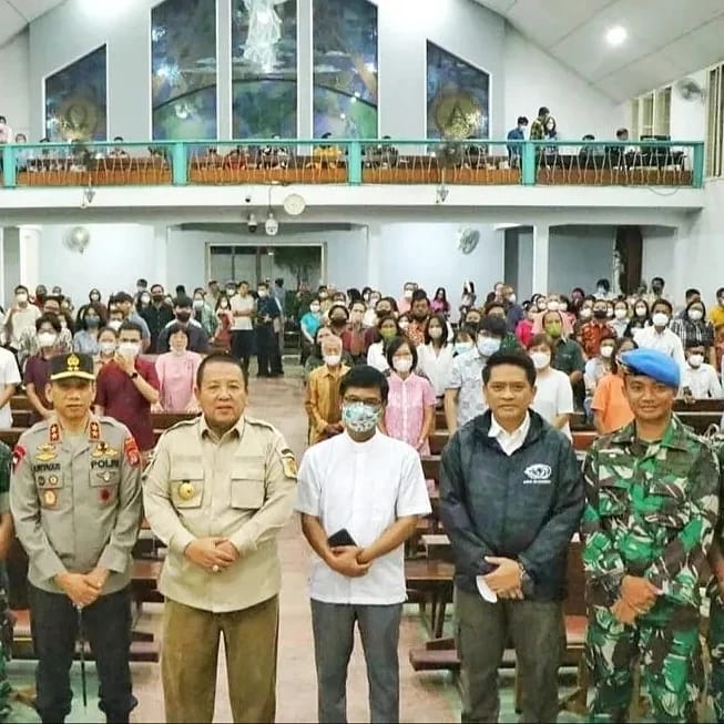 Menggala, Lanud BNY. Komandan Pangkalan TNI AU Pangeran M. Bun Yamin (Danlanud BNY) Letkol Pas Yoseph M. Purba, M.Avn.Mgt., M.M.S., pcsc., beserta pejabat Bupati Tulang Bawang Drs. Qudrotul Ikhwan, M.M., Dandim 0426/TB Letkol Inf Triano Iqbal, S.I.P., M.Si., Kapolres Tuba AKBP Hujra Soumena S.IK., M.H.,dan pejabat Forum Koordinasi Pimpinan Daerah (Forkopimda) Kabupaten Tuba lainnya meninjau langsung perayaan malam Natal di beberapa Gereja wilayah Kabupaten Tulang Bawang, Sabtu (24/12/2022).
