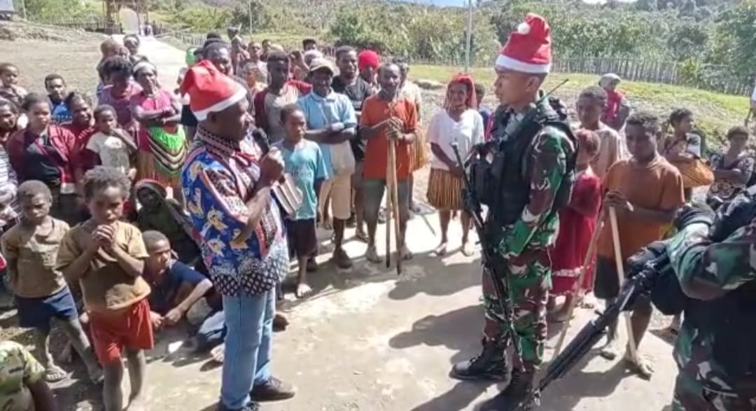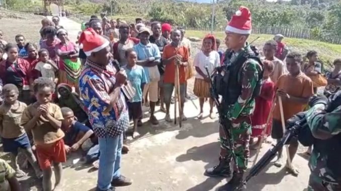 “Saya selaku tokoh masyarakat mengucapkan banyak terimakasih kepada Satgas Yonif 143/TWEJ yang telah menjaga masyarakat dan membagikan hadiah Natal serta Al-Kitab untuk kita semua,” tuturnya.