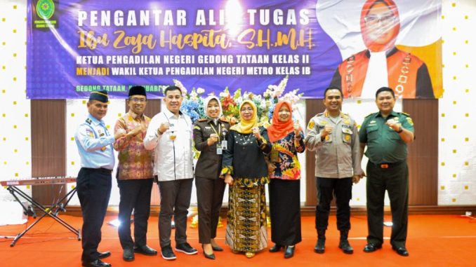 Bupati Dendi juga mengucapkan selamat kepada Ibu PATYARINI MEININGSIH RITONGA, S.H., M.Hum. selaku Ketua Pengadilan Negeri Gedong Tataan yang baru, untuk menjalankan tugas dengan baik. “Saya berharap agar para anggota di Pengadilan Negeri Gedong Tataan dapat mendukung kepemimpinan Ketua yang baru”,tutupnya.