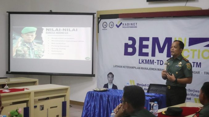 Bandar Lampung— Kabid Humas Polda Lampung Kombes Pol Zahwani Pandra Arsyad S.H.,M.Si., hadiri undangan sebagai pemateri kegiatan latihan keterampilan menajemen mahasiswa tingkat dasar oleh BEM IIB Darmajaya, yang di laksanakan di Pasca Sarjana Darmajaya Lampung, Kamis (5/1/2023).