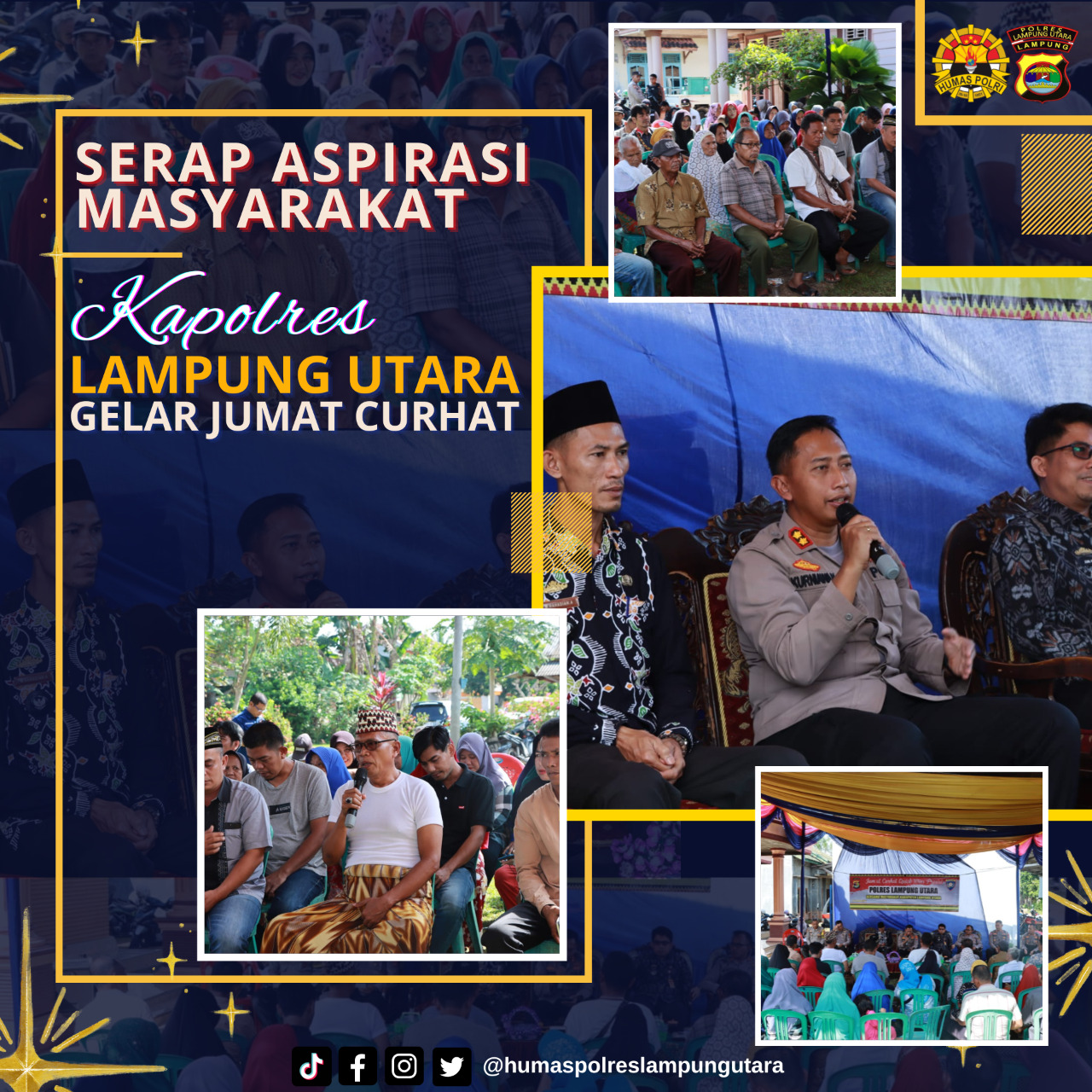 Kotabumi, Polres Lampung Utara Polda Lampung beserta Polsek dalam jajarannya, secara serentak kembali melaksanakan kegiatan serap aspirasi masyarakat melalui program Jumat Curhat.
