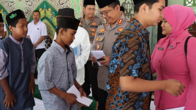 Seusai syukuran, Kapolres memberikan santunan kepada anak yatim,!dilanjutkan dengan penandatanganan prasasti sebagai bentuk peresmian sekaligus melakukan pengecekan keempat gedung tersebut.