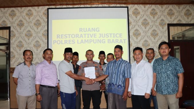Penyelesaian perkara Restoratif Justice di pimpin oleh Wakapolres Lampung Barat Kompol Robi b Wicaksono, SH didampingi oleh Kapolsek Sumber Jaya Kompol Ery Haffry,SH.MH, Kasi Propam Iptu Edward Panjaitan, Kaurbinops Sat Reskrim Ipda Joni Apriwansyah,SH, Panit Reskrim Polsek Sumber Jaya Ipda Mahmudi,SH, Panit tipidter, Kasiwas dan siekum.