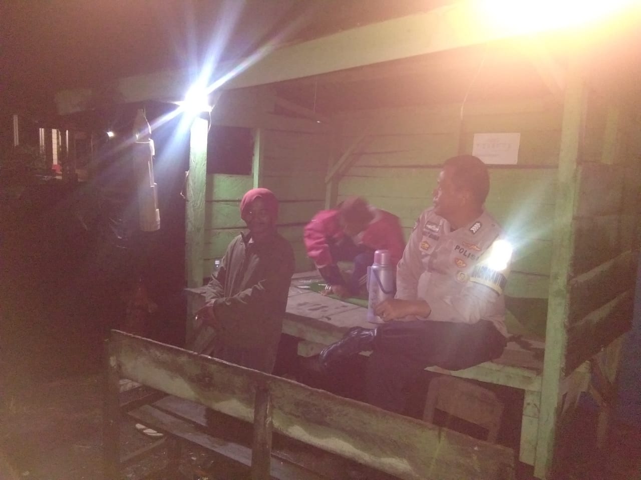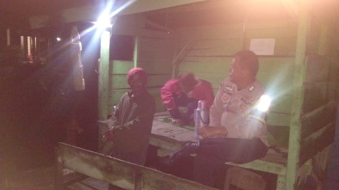 Lampung Barat–Bhabinkamtibmas wilayah hukum Polres Lampung Barat Polda Lampung terus tingkatkan keamanan di Pekon atau desa binaannya melalui siskamling, Selasa (31/01/2023).