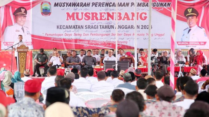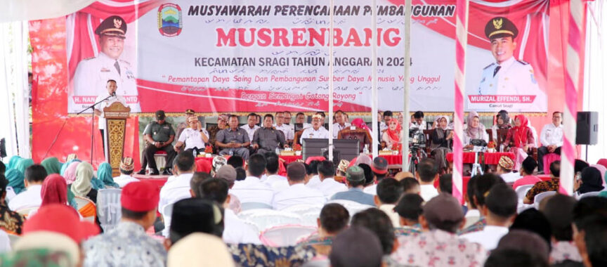 Sementara, pada kesempatan itu, Camat Sragi Murizal Effendi, S.H., menyampaikan, Kecamatan Sragi terdiri dari 10 desa dengan luas wilayah seluas dari 9,8 km².